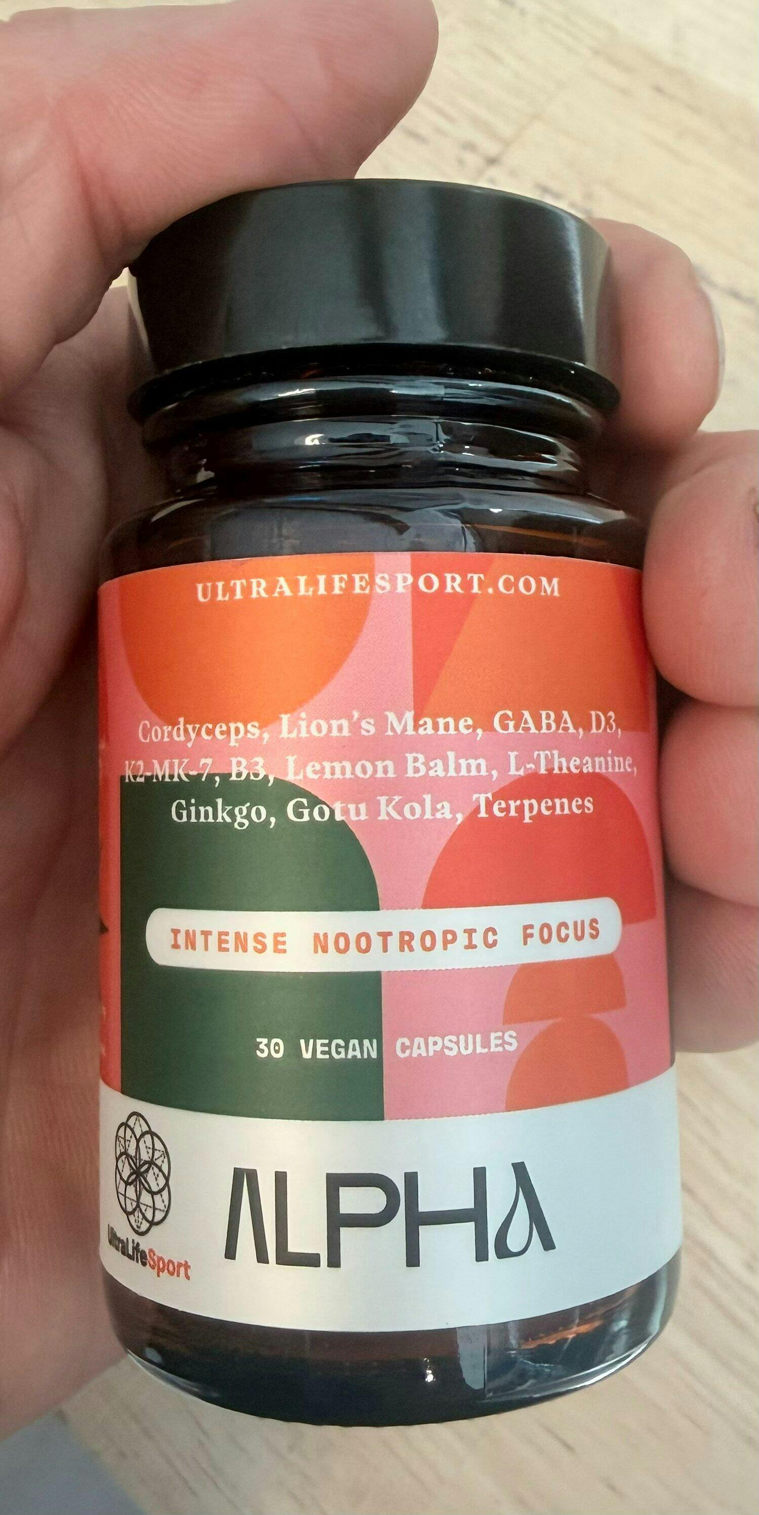 Alpha by Ultra Life Sport is a next-generation blend of botanicals, adaptogens, and key nutrients designed to help you feel centered, sharp, and ready to take on your day. This vegan formula combines naturally derived ingredients for balanced energy and mindful performance — without the crash.